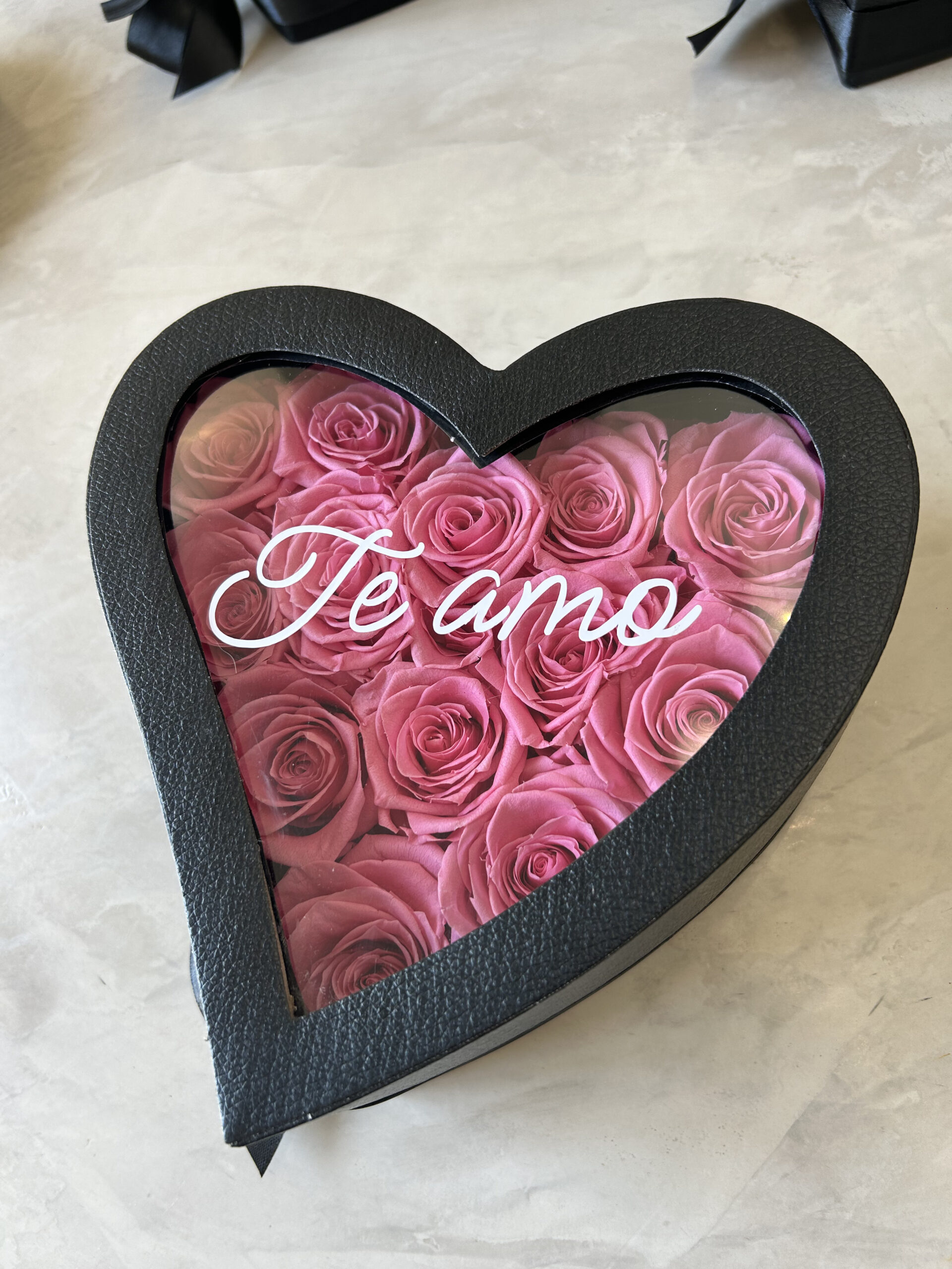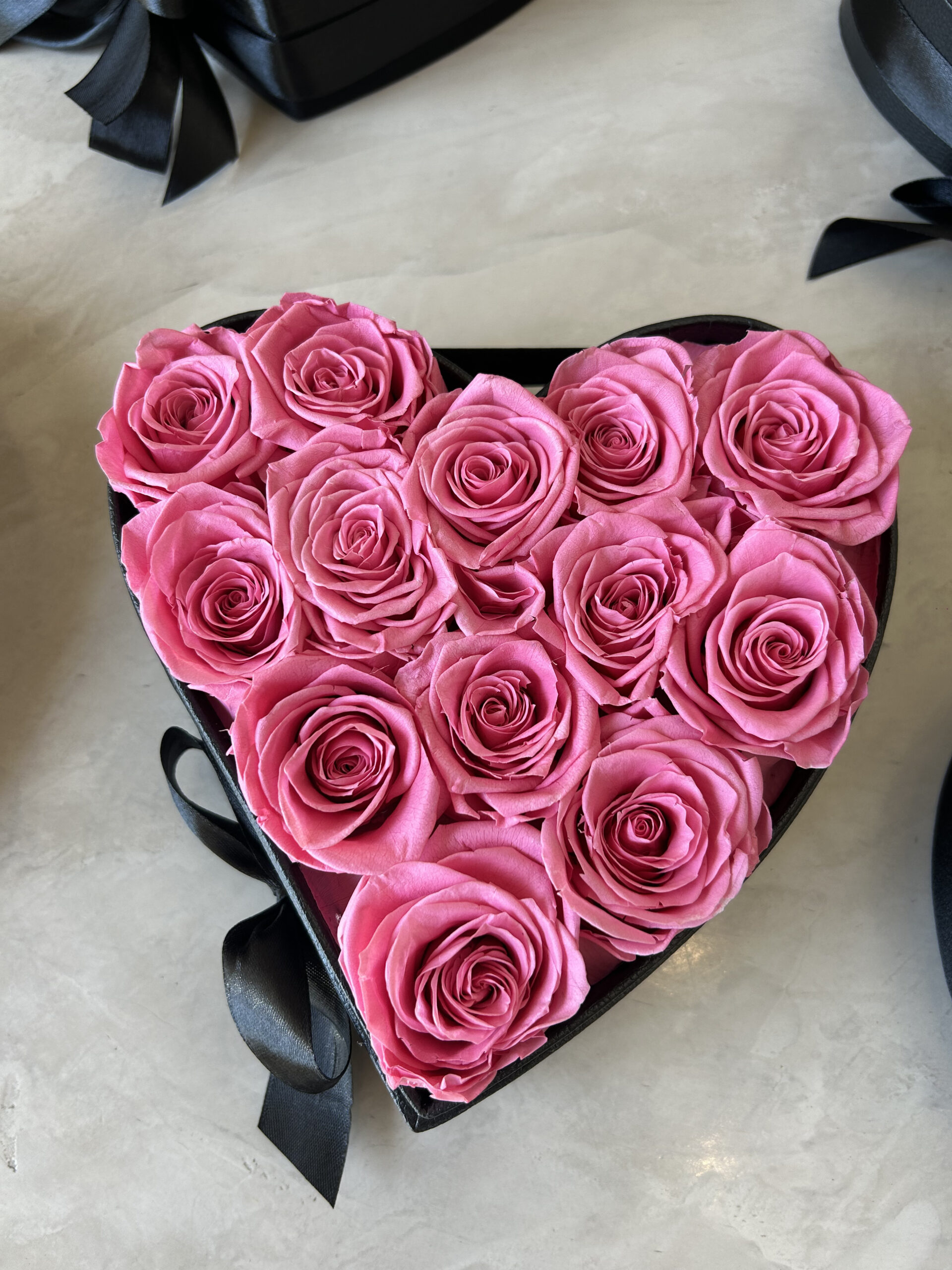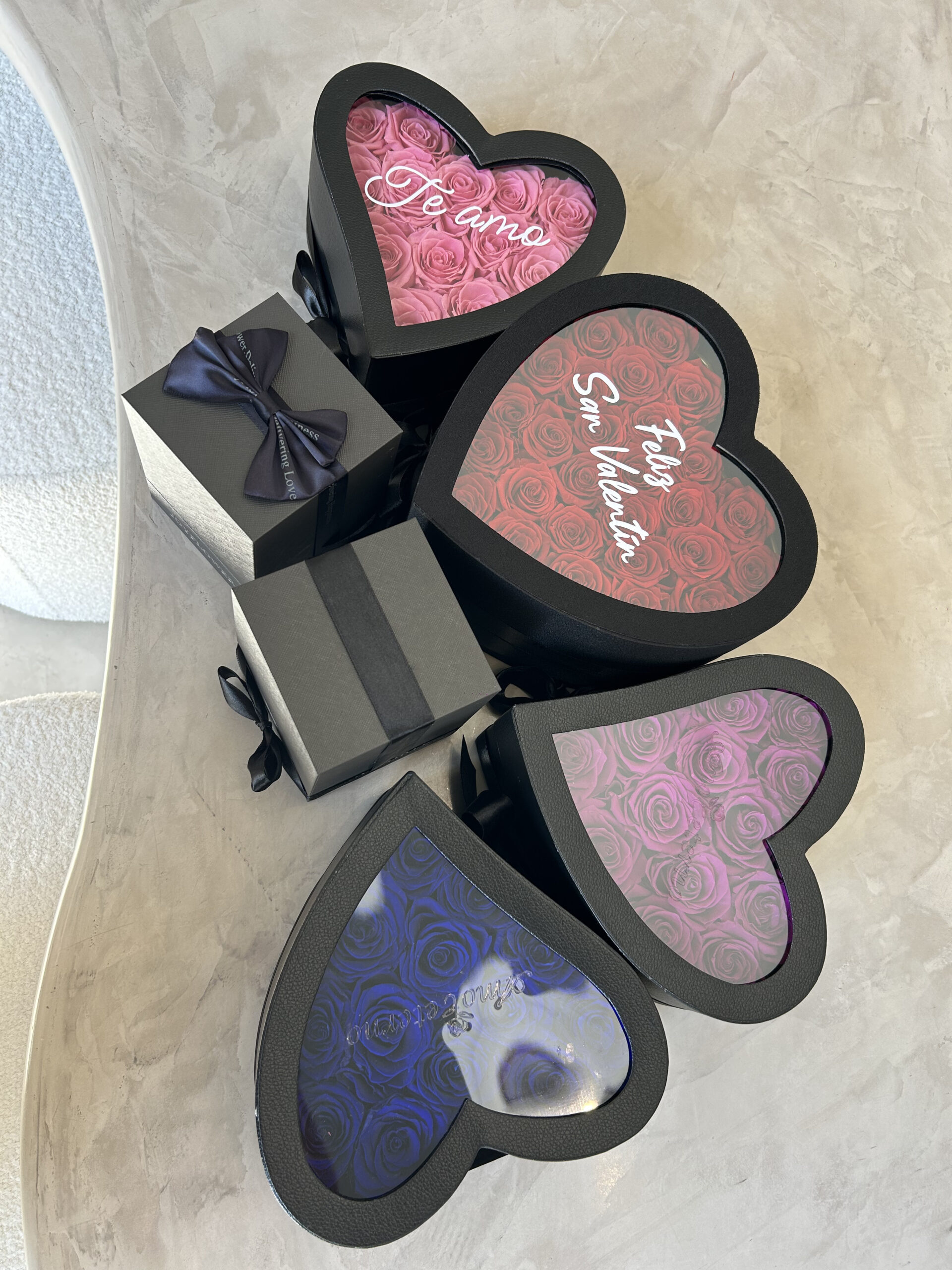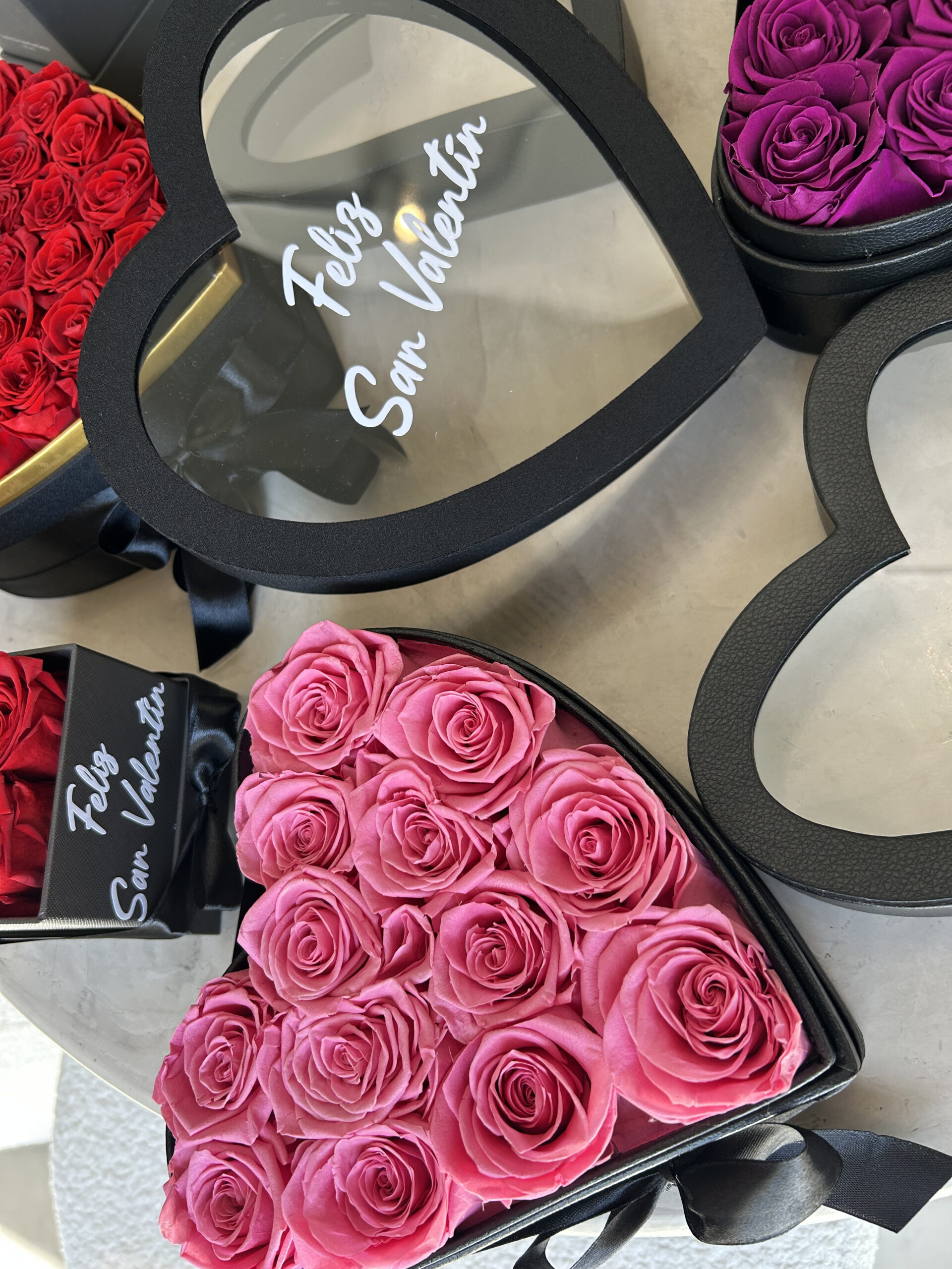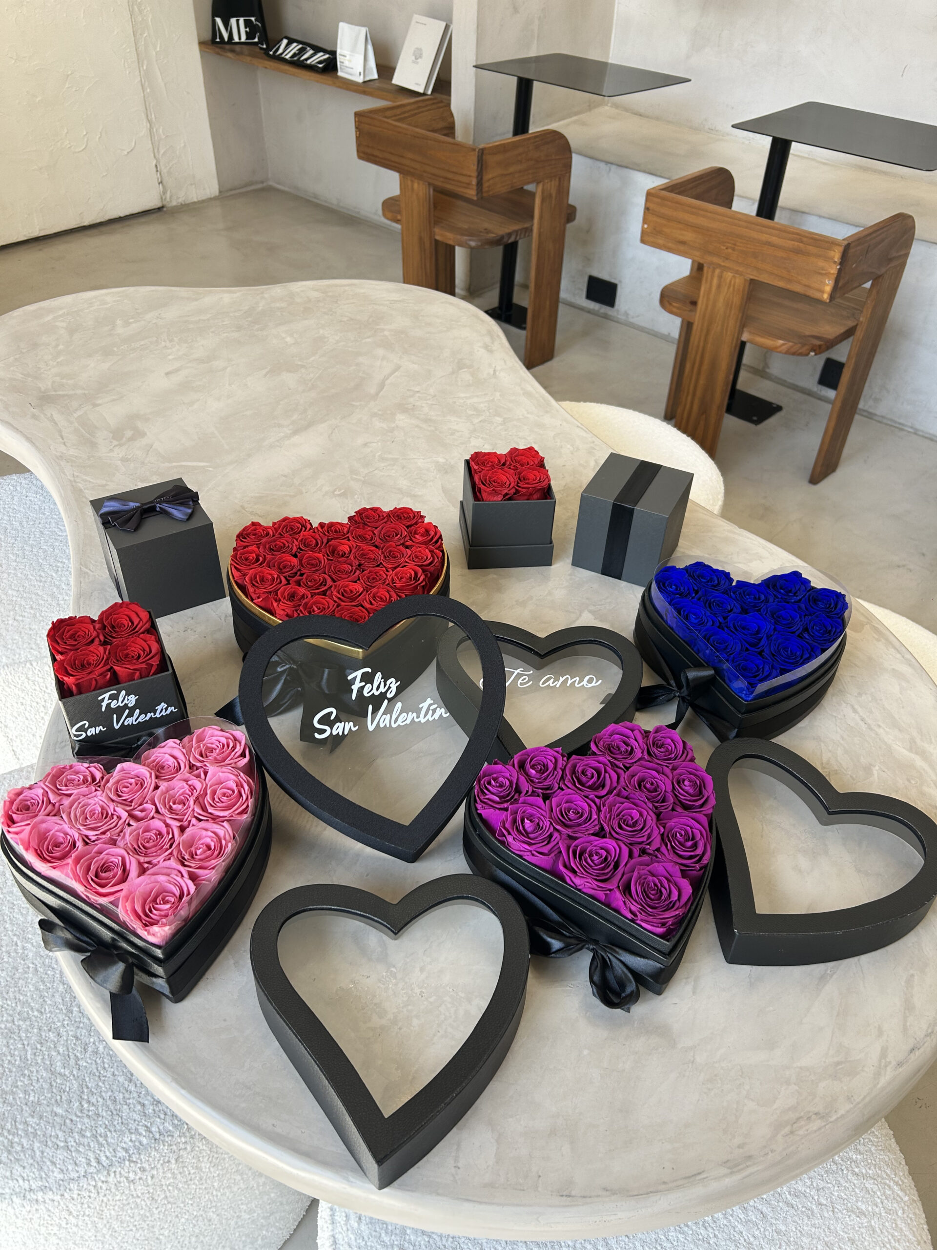 Esta caja en forma de corazón incluye 16 rosas naturales preservadas, cuidadosamente seleccionadas y tratadas para conservar su belleza, textura y color durante años, sin necesidad de agua ni mantenimiento.